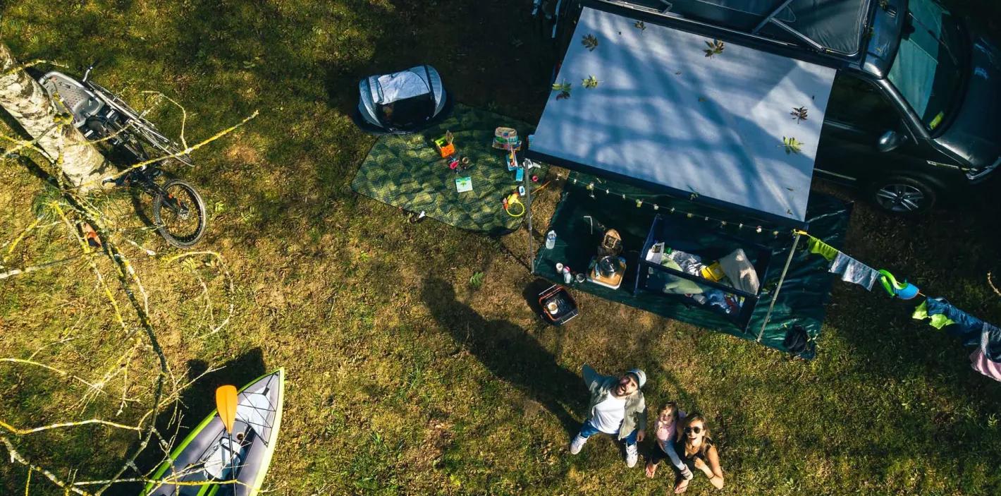 Maar één boom in de buurt op je staanplaats? Gebruik dan de luifel van je camper om de wasdraad aan vast te maken.