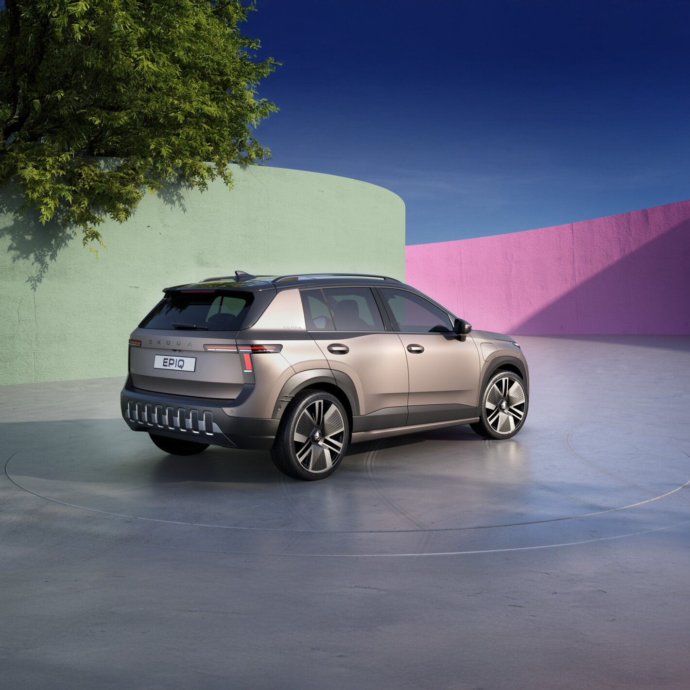 De Škoda Epiq is ons eerste productiemodel dat de Modern Solid designtaal volledig omarmt. Zijn robuuste SUV uitstraling en minimalistische lijnen worden gekenmerkt door de Tech Deck Face en een T vormige ledsignatuur.
