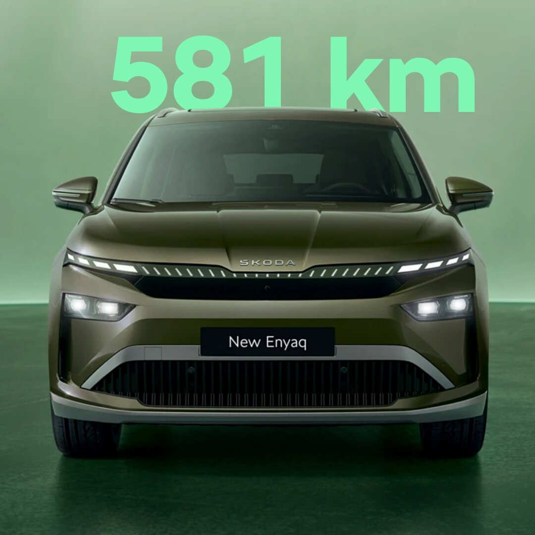 Met de Skoda Enyaq rijd je met één laadbeurt tot 581 km. Dat is: